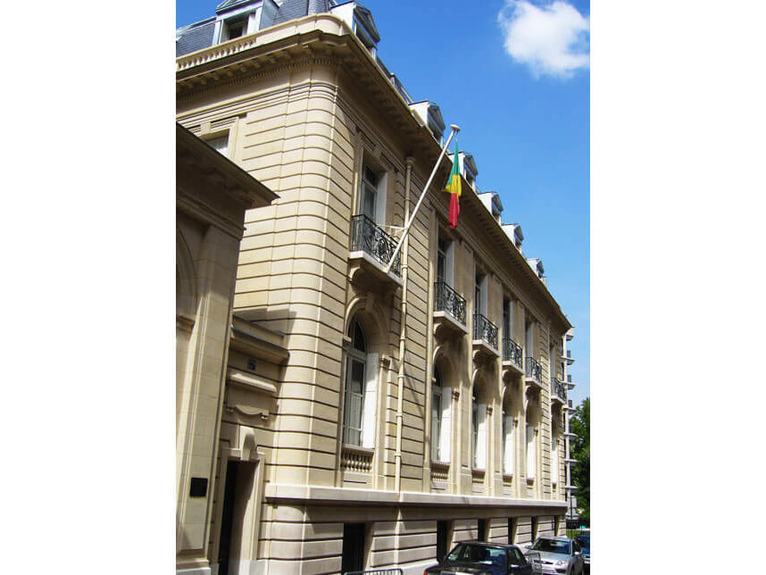 Dans le corps de bâtiment de l’ambassade : réfection des peintures décoratives intérieures, remplacement des installations électriques et mise en œuvre de la climatisation dans les bureaux.