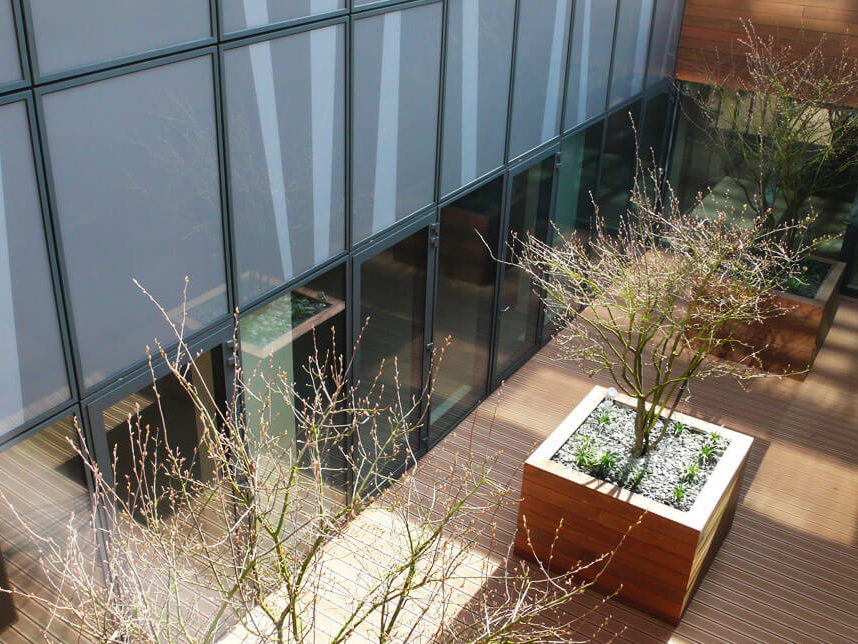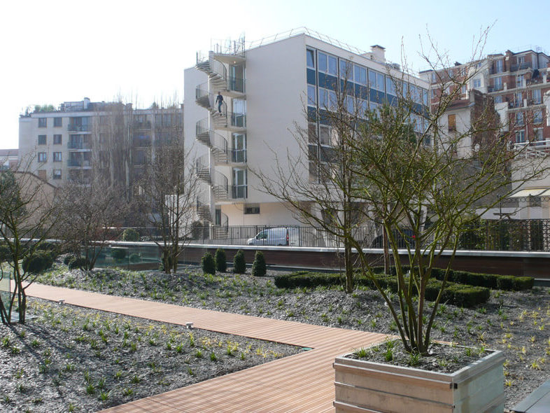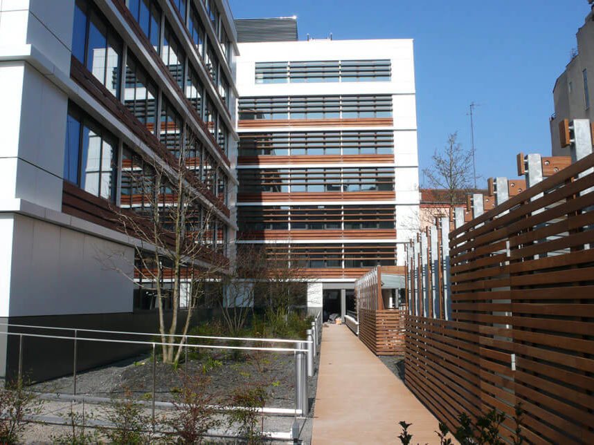 Réhabilitation lourde d’un immeuble de Bureaux des années 70 au cœur de Boulogne Billancourt avec création d’un niveau supérieur au dessus d’un corps du bâtiment.