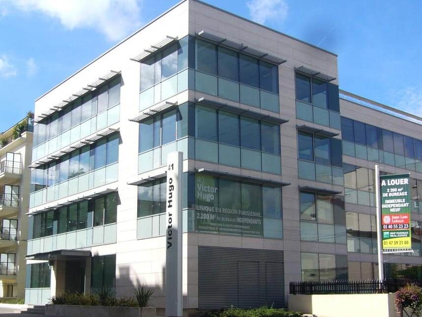 Remplacement des façades par un mur rideaux mixte en verres et pierres agrafées. Climatisation double flux par détente directe (VRV de Daikin).